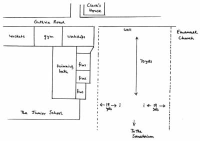 This did not happen on the main Clifton College pitch but on a smaller one, see sketch below left.