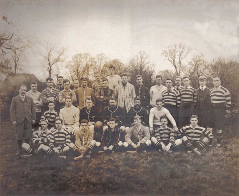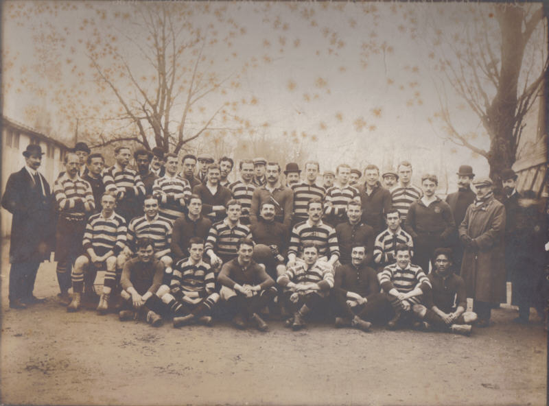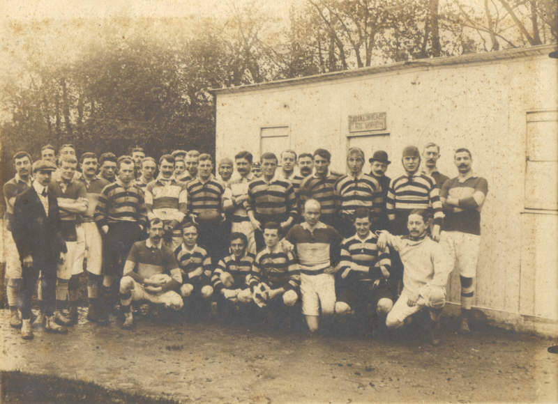 What is believed to be the Clifton and Racing Club of France sides that played in 1906-07. Clifton captain P.J.Slee holding the ball.