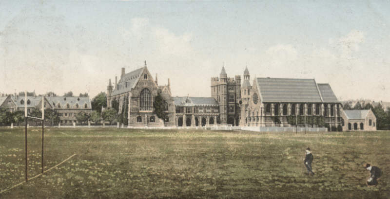 Above right the original Junior School buildings (now demolished) at Clifton College. The Collins match was played just to the right of the buildings, on what is known as 'Collins' Piece'.