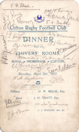 Above signed menu from the 1907 Annual Dinner held at the Chivers Rooms.