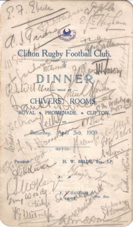 1909 - Clifton provided 6 players to a joint Clifton/Bristol team that lost to Australia 11-3 at Gloucestershire County Ground in front of a crowd of 5,000.