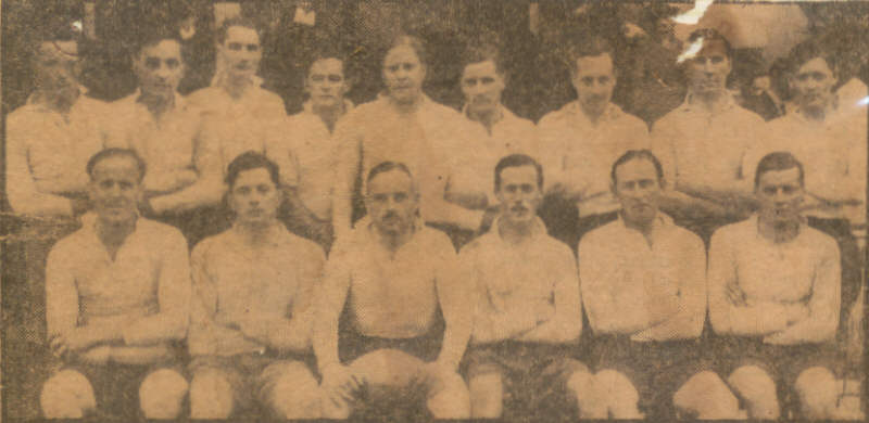 | Back Row (L-R): ?, ?, ?, ?, ?, ?, ?, ?. Sitting: ?, ?, J.de S.Hall (Captain), ?, ?. In Front: ?, ?. |