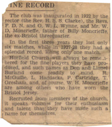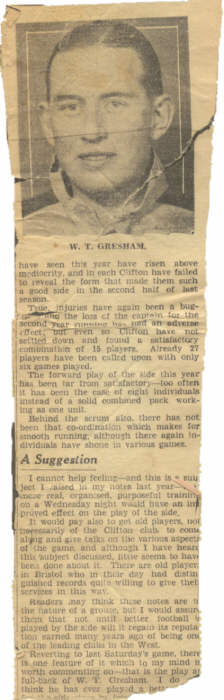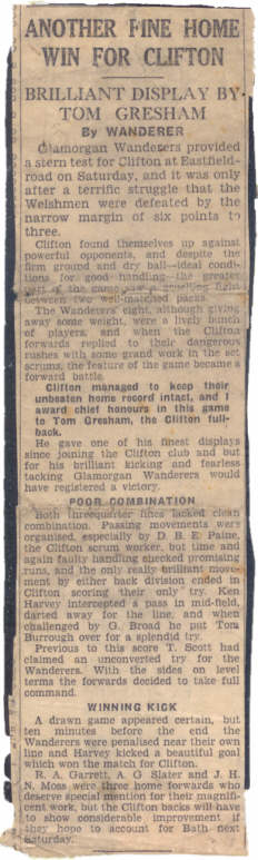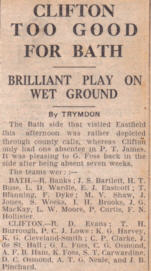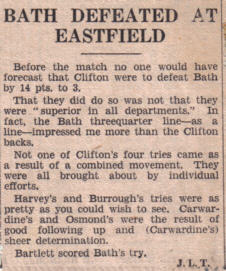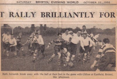 Above from the Bristol Evening World, October 22nd 1932. Clifton had just beaten Bath 14-3 that day at Eastfield Road