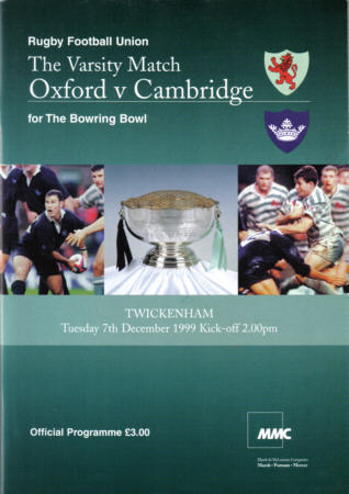 Above programme cover and teamsheet for the 1999 Varsity final with Andy Collins. Oxford won 16-13.