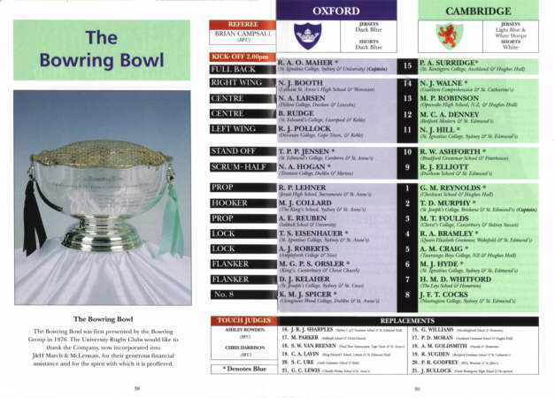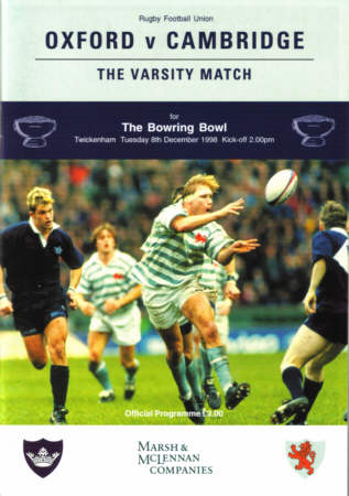 Above programme cover and teamsheet for the 1998 Varsity final with Adam Reuben. Cambridge won 16-12.
