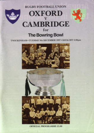 Above programme cover and teamsheet for the 1997 Varsity final with Adam Reuben. Cambridge won 29-17.