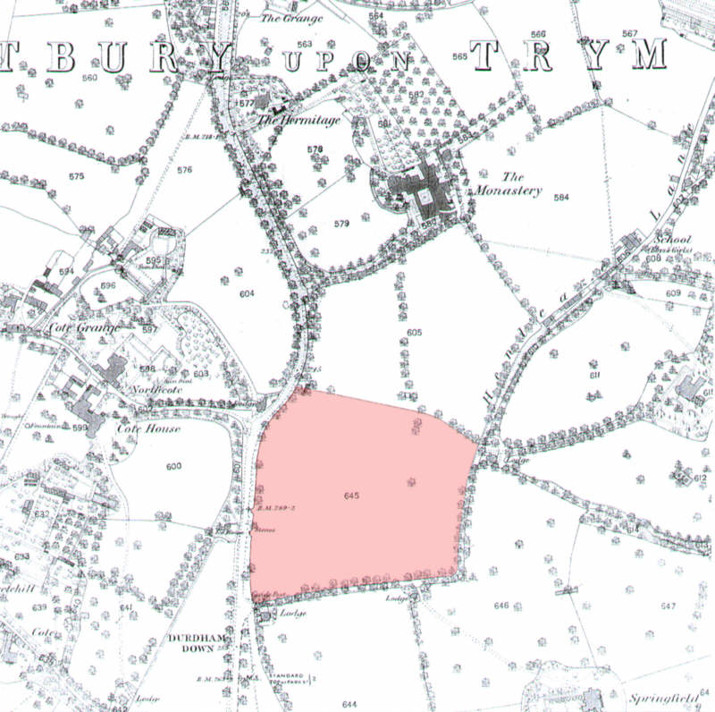 Above the ground at Durdham Down coloured pink. Reproduced from the (1881) Ordnance Survey map. © Crown copyright.