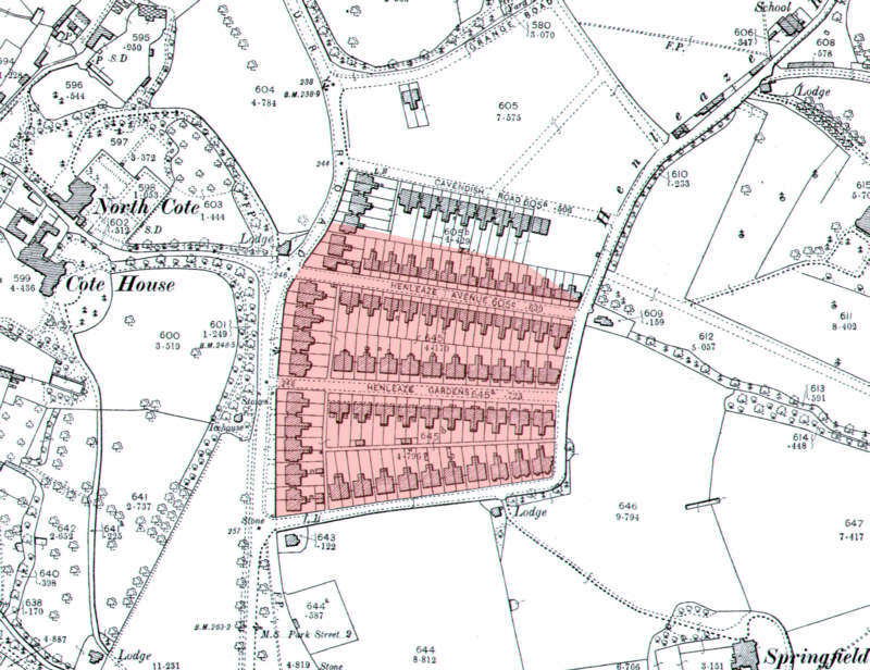Above: After being sold the ground was developed with housing. Position of Field 645 shown pink. Reproduced from the (1903) Ordnance Survey map. © Crown copyright.