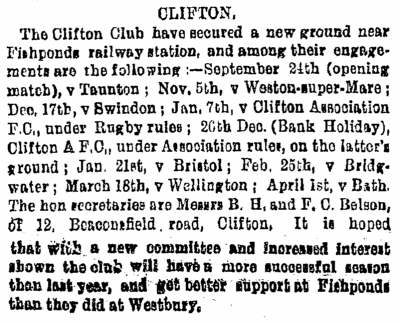 Clifton Rugby Football Club History |