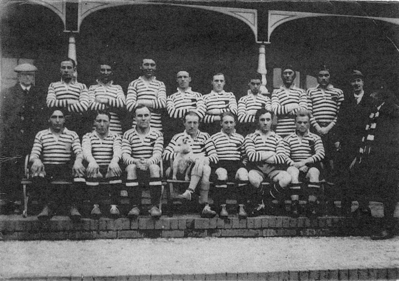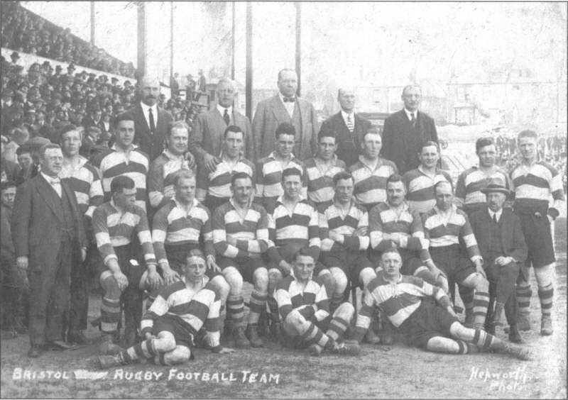 Above the 1923-24 Bristol Rugby side (shown here on a postcard) with ex Clifton player Bunny Chantrill.