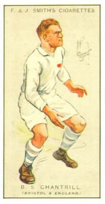 Above 1912 Bristol Grammar School Rugby XV with Manley James and Bunny Chantrill. The BGS captain Reginald Clarence Werrett Pickles went on to play for Bristol, Gloucestershire and gained 2 England caps in 1922. Chantrill's entry in the 1912 Bristol Grammar School Chronicle says that his tackling was weak and needed improvement. He went on to become famous for tackling so hard.