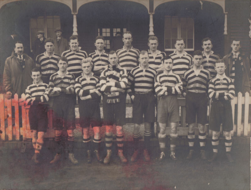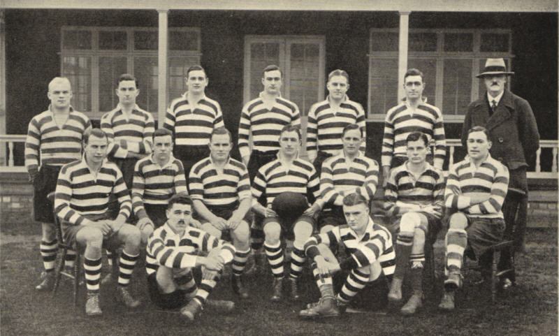 Back Row (L-R): J.Oates (Linesman), E.S.Bostock-Smith (Chairman), A.J.Owens Britton (Hon. Sec.), W.Bennett (Trainer). Middle Row: J.Milburn, J.A.Tucker, A.G.Hasler, A.T.Hore, A.Beard, E.L.Stinchcombe, E.Sullivan, M.V.Shaw, E.A.Richardson, F.Cummings, P.J.Williams. Seated: W.H.Hale, B.S.Chantrill, L.J.Corbett, R.G.B.Quick (Captain), J.S.Tucker (Vice-Captain), R.C.W.Pickles, T.G.Spoors, Dr H.W.M.Stover. Front: S.H.Budd, C.B.Carter, E.T.Tucker. |