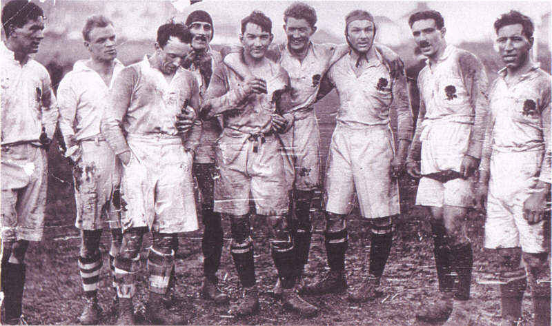 Above England after they had beaten Wales on 19th February 1924 with ex Clifton RFC player Bunny Chantrill second left.