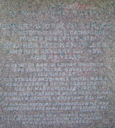 Above Fuller's grave at Lansdown Cemetery