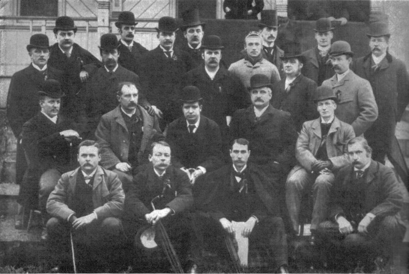 Standing (L-R): A.N.Hornby, F.W.Burnand, W.Cail, J.W.H.Thorp, A.Budd, F.I.Currey, H.Fuller, F.H.Fox, G.F.Berney, R.Westray, J.H.Payne, A.B.Perkins, B.Kilner.Centre Row, Seated: H.L.Ashmore, H.W.T.Garnett, G.Rowland-Hill, J.Maclaren, J.H.S.Marcarther,. Front Row, seated: T.M.Swinburne, S.E.Sleigh, M.Newsome, R.S.Whalley. |