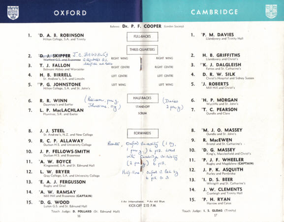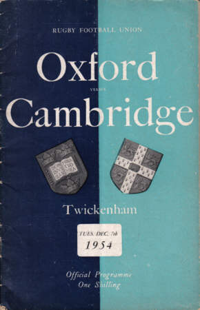 Above the programme cover and team sheet from that 1954 Varsity match that included