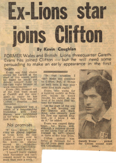 He joined Clifton in February 1983. Above from the Evening Post on Saturday February 26th 1983.