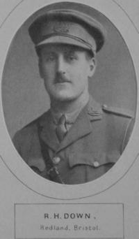 Died of wounds whilst serving in France. He was the youngest son of the late Mr H Down (Bournemouth) Married less than 18 months, only daughter of Mr H R Wansborough. The gallant officer was educated at Bedford. At the outbreak of the War was manager of Lloyds Bank, Westbury-on-Trym