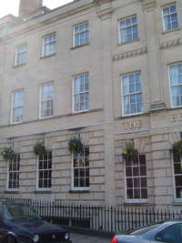 Above 14 Berkeley Square, Clifton. Now part of the Berkeley Square Hotel and used in the House of Elliot. Next door at 15 is part of the Berkeley Hotel.
