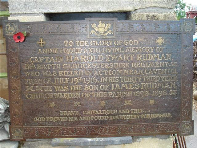 Captain Harold Ewart Rudman - Killed in action 19th July 1916 - Gloucestershire Regiment 6th Battalion 'D' Company.