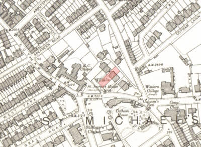 Above 1901 map of 3 Hillside Road, Cotham, Bristol. Near the top of Cotham Hill and Hampton Road.