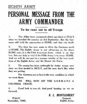 In leaflets distributed to his Eighth Army troops before and after the Sangro River crossing Montgomery exulted over hitting the enemy "a colossal crack".