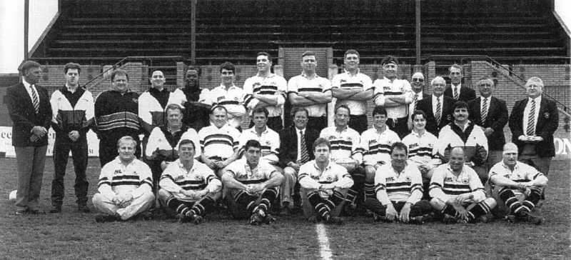 Back: Grant Watson (President), John Phillips, Mike Skinner (Team Manager), Lee Ashford, Mark Beresford, Matt Todds, Mark Wyatt, Lee Waddon, Simon Swales, Richard Clifton (Committed Supporter), Fred Cannon (Vice President), Derek Farley (Vice President), Alan Kendall (Membership Secretary) Brian Jordan (Fixtures Secretary). Middle: Bob Miller (Assistant Coach), Adam Burns, Paul Crocker, Norman Golding (Chairman), Wayne Hone (Captain), Dean Dewdney, Paul Futter, Peter Polledri (Coach). Front: Charles Newth, Paul Jeffrey, Peter Naivalura, Matt Brain, Simon Hogg, Kevin Borgira, Paul Cox. |