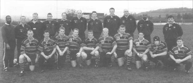 Back Row (L-R): Gozie Ezulike, Mark Harraway, Andy Collins, Eddie Smith, Stuart Roberts, Alex Adams, Adam Barnes, Nick Cooper, Andy Blackmore, Ralph Knibbs (Captain), Peter Polledri (Director of Coaching). Front Row: Justin Morris, Duncan Jeffrey, Barnaby Kent, Andy Stephens, Tony Hussey, Rhys Oakley, Mark Wyatt, Nick Lloyd, Marl Lloyd, Jason Packer. |